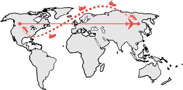 Ну хорошо, выбираем самолёт. Посмотрим, как он летит весь свой путь. Вот он разгоняется на взлётно-посадочной полосе в аэропорту, отрывается от земли, взмывает ввысь, летит… Затем снова снижается, тормозит и останавливается уже на месте назначения. Если бы он чертил за собой линию, то получилась бы дуга. (Напоминаю, мы смотрим по-прежнему настолько издалека, что самолёт кажется точкой. Будь мы ближе – конечно, это была бы не дуга.) По-умному сия дуга называется траекторией. Если померить её длину, то получим путь. Тот самый, который в начальной школе считается, как скорость, умноженная на время. Но если бы всё было так просто… Помимо пути, есть ещё перемещение. Слово похожее, но значит другое. Перемещение – это если соединить начальную и конечную точки прямой линией. То есть, получается, самый короткий из всех возможных путей: обычный путь может быть изогнут хоть буквой Зю, а этот всегда только отрезок. Но здесь есть ещё один подвох. Перемещение – это ещё и направленный отрезок. Зачем такое умное нагромождение? Потому, что физика тесно сплетена с математикой. Мы же не просто так поставили точку (0;0;0) и включили время – теперь в тех координатах, которые мы создали, можно считать всё, что требуют от бедных нас в тоннах задач. И считать нужно именно по перемещению, а не по пути. В конце концов, нам же выгоднее добираться до места назначения быстрее всего, то бишь кратчайшим путём? А стрелочка ставится затем, чтобы точно знать, откуда и куда держим наш путь… нет, наше перемещение.