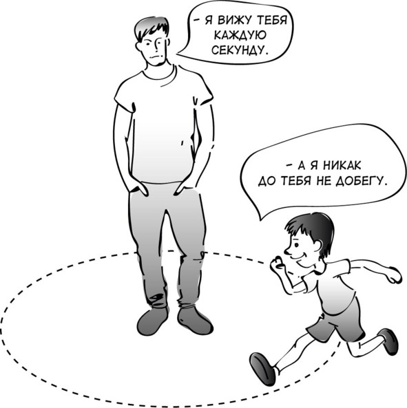 А считается оно как квадрат скорости, делённый на радиус окружности. Опять бредовая формула? А это потому, что скорость берём линейную (метры в секунду). Если же мысленно смотреть из центра и крутить головой, смотря на едущую по кругу машину, то за какое-то время голова повернётся на какой-то угол. Скорость, с которой она повернётся, будет угловой (радианы в секунду). Вот если через такую скорость считать, то будет… квадрат угловой скорости, умноженный на радиус. Опять не угодил?! Почему квадрат? Да пёс его знает, если честно. Одно из лучших оправданий физиков при вопросах «Почему формула такая бредовая?!» – размерность. Если посчитать размерность по формуле, и она получится равной размерности того, что хотим получить, то в 75% случаев формула правильная. (Число 75% беру с потолка. Кто уже точно рассчитал, что на самом деле не 75, а 76%, – смело кидайте тухлые помидоры.)