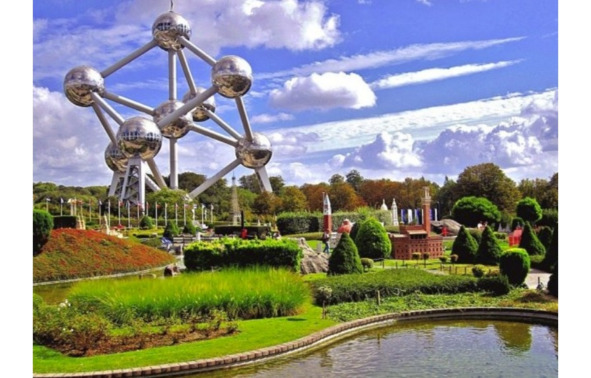 Инженер-архитектор Андре Уотеркейн наглядно показал народу кубическую структуру железа. Здание-инсталляция построено в послевоенные годы и символизирует то, что будущее человечества – за физикой и, прежде всего, за ядерной энергетикой. Тема мирного атома после ужасных бомбежек Хиросимы и Нагасаки давала людям надежду, что не все так ужасно и плохо, если взглянуть на мир, находясь внутри атома.