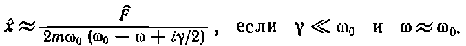 Иногда приходится иметь дело с формулой, немного отличающейся от (23.8); она тоже называется «резонансной» и, несмотря на некоторое отличие от (23.8), описывает те же самые явления. Дело в том, что если значение ? очень мало, то наиболее интересная область резонансной кривой лежит около частоты ?=?0, а здесь при малых ? формулу (23.8) с большой степенью точности можно заменить приближенной формулой. Поскольку ?20-?2=(?0-?)(?0+?), то для ?, очень близких к ?0, разность квадратов почти равна 2?0(?0-?), а ?? можно заменить на ??0. Значит, ?20-?2+???2?0(?0-?+i?/2) и