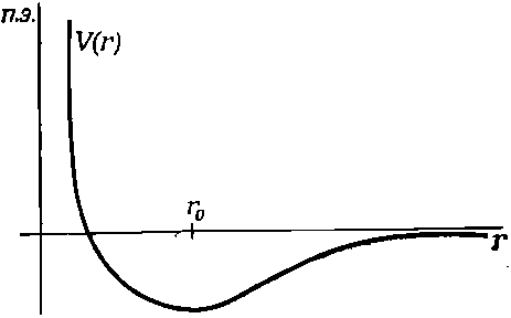 Если r>r0, то при сближении молекул энергия уменьшается, поэтому молекулы притягиваются; если же молекулы сближаются еще теснее, энергия очень резко возрастает, значит, на малых расстояниях молекулы сильно отталкиваются. Таково в общих чертах поведение молекул.