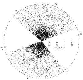 Влияние гравитации особенно хорошо заметно на примере распределения галактик. Начиная с 2000 года в рамках проекта «Слоановский цифровой небесный обзор» (Sloan Digital Sky Survey, SDSS) начали составлять карты почти всей близлежащей вселенной. Были сделаны снимки более ста миллионов галактик и измерены расстояния более чем до миллиона из них. И выяснилось, что налицо отчетливая структура — сгустки, волокна и пустые области (они так и называются — «пустоты», или «войды»). Однако если заглянуть в далекое прошлое (то есть взглянуть на очень далекие области, что одно и то же), окажется, что вселенная заполнена очень равномерно.
