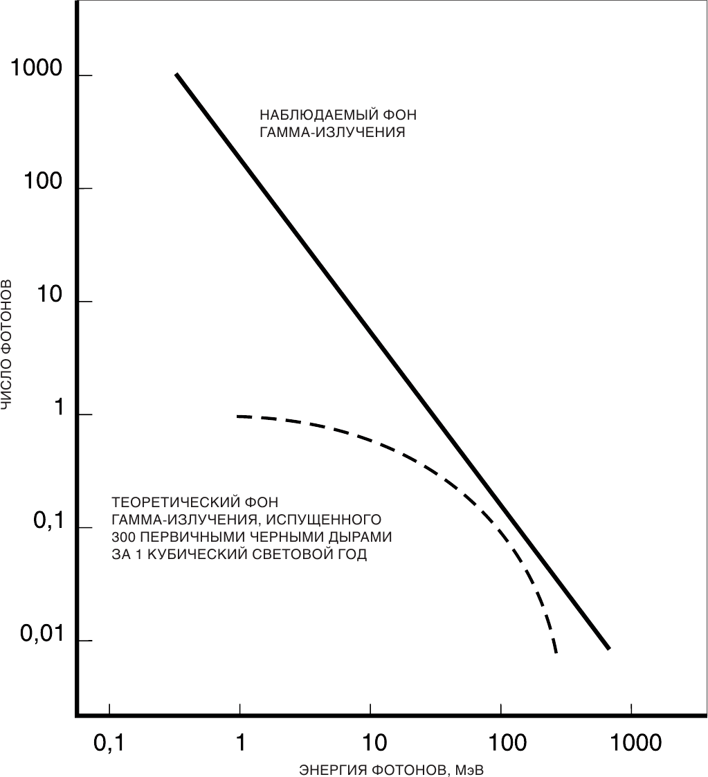 Даже если поиск первичных черных дыр даст отрицательные результаты, а он может их дать, мы все равно получим важную информацию об очень ранних стадиях развития Вселенной. Если ранняя Вселенная была хаотической, или нерегулярной, или если давление материи было мало?, можно было бы ожидать образования значительно большего числа черных дыр, чем тот предел, который нам дали наблюдения фона гамма-излучения. Объяснить, почему черные дыры не существуют в таком количестве, в каком их можно было бы наблюдать, можно лишь в том случае, если ранняя Вселенная была очень гладкой и однородной, с высоким давлением вещества.