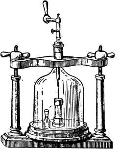 На медную тарелку воздушного насоса Петров поставил серебряный стакан, перевернутый вверх дном. Этот стакан он накрыл хрустальным колпаком, имевшим высоту 21,6 сантиметра и ширину 13 сантиметров.