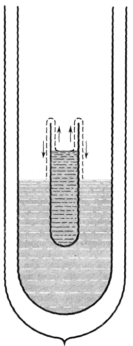 Чтобы разрешить это противоречие, мы выдвинули предположение, что большая теплопроводность, которую наблюдал Кеезом, является только кажущейся. В самом деле, известно, что существуют два механизма теплопередачи. Один — это теплопередача от атома к атому, как мы описывали и какая наблюдается в твердом теле, а другой же механизм теплопередачи — это конвекция. Положим, вы будете держать руку над горячим источником, например радиатором, — вы сразу почувствуете тепло, так как поток нагретого воздуха будет переносить тепло к вашей руке. Такой перенос тепла вместе с движущимся потоком вещества и называется конвекцией. Если же руку поместить под радиатором, то никакого тепла не почувствуется, так как поток теплого воздуха идет кверху, а обычная теплопередача воздуха очень мала. В такой плохо-теплопроводной среде, как воздух, обычная теплопередача только и происходит благодаря конвекционному переносу. Так и у гелия с его большой текучестью естественно предположить, что будет легко происходить конвекционная теплопередача, и таким механизмом переноса тепла и могла бы объясняться большая теплопроводность, которую наблюдал Кеезом.