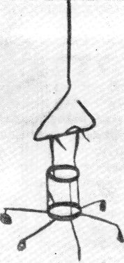 Это явление настолько интересно и ярко, что его можно будет вам показать на упрощенном приборе, специально построенном для демонстрации. Этот прибор изображен на рисунке. Мы назвали его «паучком». Он состоит из двух стеклянных колпачков 2, запаянных внизу, к которым прикреплено 6 капилляров в виде ножек паука. Стеклянный колпачок покоится на очень острой игле 1 и, таким образом, может свободно вращаться. Конечно, паучок целиком погружен в жидкий гелий-II. Если посредством пучка света 3 нагревать гелий, находящийся в сосудике 2, то из каждой ножки он начнет вырываться струей, сила реакции которой, как вы увидите, заставляет этот паучок вращаться.