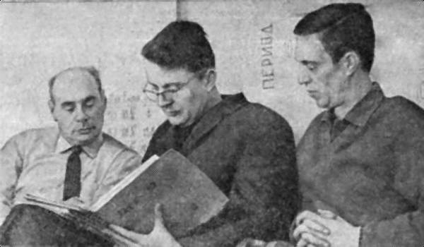 Группа ученых из Дубны, удостоенных Ленинской премии за синтез и исследование элементов второй сотни. Слева направо: академик Г.Н. Флеров, член-корреспондент Чехословацкой академии наук доктор химических наук И. Звара, доктор физико-математических наук В.А. Друнн