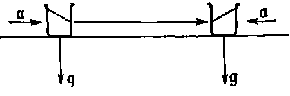 Псевдосилы обнаруживаются на любопытном опыте, состоящем в том, что мы толкаем с ускорением кувшин с водой по столу. Тяжесть действует на воду вниз, но из-за горизонтального ускорения есть еще и псевдосила в горизонтальном направлении, назад по отношению к ускорению. Сумма силы тяжести и псевдосилы образует угол с вертикалью, во время ускорения поверхность воды перпендикулярна к этой сумме сил, т. е. наклонена под углом к столу, и вода приподнята к задней стенке кувшина. Когда мы перестаем толкать кувшин, когда он замедляется вследствие трения, псевдосила меняет свое направление и вода приливает к передней стенке кувшина (фиг. 12.4).