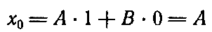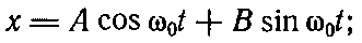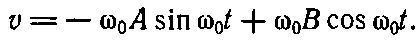 Эти выражения справедливы для всех t, но у нас есть дополнительные сведения о величинах х и v при t=0. Таким образом, если положить t=0, мы должны получить слева х0 и v0, ибо это то, во что превращаются х и v при t=0. Кроме того, мы знаем, что косинус нуля равен единице, а синус нуля равен нулю. Следовательно,