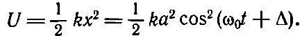 Давайте найдем кинетическую энергию Т и потенциальную энергию U. Потенциальная энергия в произвольный момент времени равна 1/2kx2, где х — смещение, а k — постоянная упругости пружинки. Подставляя вместо х написанное выше выражение, найдем