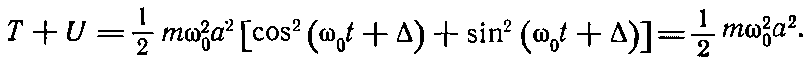 Кинетическая энергия равна нулю при максимальном х, ибо в этом случае грузик останавливается; когда же грузик проходит положение равновесия (x=0), то кинетическая энергия достигает максимума, потому что именно тогда грузик движется быстрее всего. Изменение кинетической энергии, таким образом, противоположно изменению потенциальной энергии. Полная энергия должна быть постоянной. Действительно, если вспомнить, что k=m?20, то