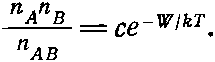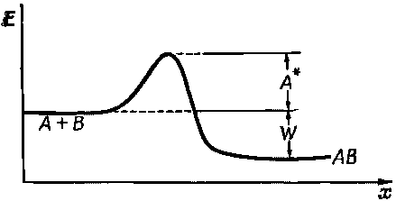 Таким образом, скорость перехода АВ в А и В пропорциональна произведению nАВ — начальному числу молекул АВ на ехр[-(W+A*)/kT]: