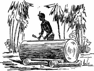 Передача известий посредством звуковых сигналов и теперь еще распространена у первобытных обитателей Африки, Центральной Америки и Полинезии. Первобытные племена употребляют для этой цели особые барабаны, с помощью которых передают звуковые сигналы на огромное расстояние: условный сигнал, услышанный в одном месте, повторяется в другом, передается таким же образом далее, — и в короткое время обширная область уведомляется о каком-либо важном событии (рис. 153).