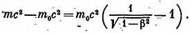 Умножим массу на квадрат скорости света. Для движущегося тела это будет m∙с2, а для того же тела в покое m0∙с2. Составим разность этих двух выражений: