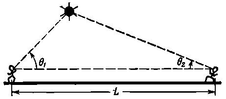 Фиг. 5.4. Определение высоты искусственного спутника методом триангуляции.