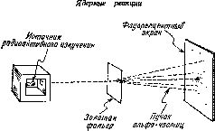 Первый шаг в этом направлении был сделан Резерфордом [129]; он бомбардировал различные газы альфа-частицами и обнаружил, что каждый раз, когда альфа-частица ударяет в ядро атома, она нарушает его структуру (рис. 23).