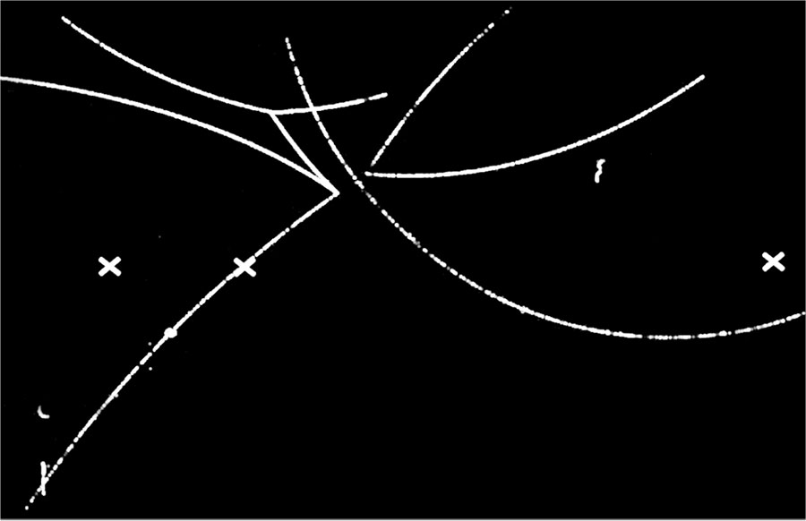 Конфайнмент делает невозможным наблюдение изолированных кварков и глюонов, и потому может создаться впечатление, что представления о кварках и глюонах как о частицах относятся, скорее, к области метафизики. Но у сильного взаимодействия есть еще одно свойство – так называемая асимптотическая свобода, – благодаря которому понятия кварков и глюонов обретают определенные очертания. При обычных энергиях сильное ядерное взаимодействие действительно сильно и надежно удерживает кварки вместе. Но эксперименты на больших ускорителях частиц свидетельствуют, что при высоких энергиях сильное взаимодействие заметно ослабевает, отчего кварки и глюоны начинают вести себя почти как свободные частицы. На рисунке 5.2 приводится фотография столкновения протона высокой энергии и антипротона. На волне успеха после объединения электромагнитного и слабого ядерного взаимодействий был предпринят ряд попыток объединить эти две силы с сильным ядерным взаимодействием, чтобы создать так называемую теорию великого объединения (англ. Grand Unified Theory; GUT). Название несколько претенциозное: созданные теории не такие уж великие и объединяют отнюдь не всё, поскольку не распространяются на силу тяготения. К тому же они неполны, поскольку содержат ряд параметров, численные значения которых нельзя предсказать в рамках этих теорий: их следует подбирать так, чтобы они не противоречили экспериментальным данным. Однако это все же шаг на пути к полной, всеобъемлющей теории. Основная идея такой теории сводится к следующему. Как мы отмечали выше, сильное ядерное взаимодействие становится слабее при высоких энергиях. При некоторой – очень высокой – энергии, называемой энергией великого объединения, три рассматриваемых типа взаимодействий сравняются по интенсивности и смогут рассматриваться как разные аспекты единой силы. Теории великого объединения также предсказывают, что при этой энергии разные частицы вещества со спином 1/2 – такие, как кварки и электроны, – тоже станут, в сущности, одним видом частиц, то есть объединение произойдет и на этом уровне.