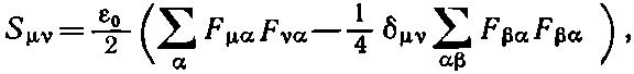 В качестве примера рассмотрим этот тензор не в веществе, а в пустом пространстве с электромагнитным полем. Вы знаете, что поток энергии электромагнитного поля описывается вектором Пойнтинга S=?0c2E?В. Так что х-, у- и z-компоненты вектора S с релятивистской точки зрения являются компонентами: Stx, Sty и Stz нашего тензора энергии-импульса. Симметрия тензора Sij переносится и на временные компоненты, так что четырехмерный тензор S?v тоже симметричен: