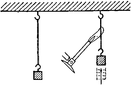 Рассмотрим еще один пример. Многим, наверное, известно интересное свойство резины — если растянуть ее, она нагреется. Если вы зажмете губами резиновую полоску и, потянув рукой, растянете ее, то отчетливо почувствуете, что она нагрелась. Это нагревание обратимо, т. е. если вы, продолжая держать полоску губами, быстро отпустите ее, то возникнет столь же отчетливое ощущение холода. Это означает, что при растяжении резина нагревается, а при ослаблении натяжения она охлаждается. Наш инстинкт может нам подсказать, что нагретая резина тянет лучше: если растяжение нагревает резину, то нагревание заставит ее сжаться. Действительно, если поднести к растягиваемой грузиком резиновой полоске газовую горелку, то мы заметим, что полоска резко сократится (фиг. 44.1).