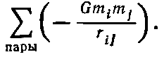 Перейдем теперь к более общему случаю и рассмотрим, что произойдет, если тел много. Предположим, что имеется несколько тел; пронумеруем их: i=1, 2, 3, ... и пусть все они притягивают друг друга. Что тогда произойдет? Можно доказать, что если сложить кинетические энергии всех тел и добавить сюда сумму (по всем парам частиц) их взаимных потенциальных энергий тяготения — GMm/rij, то все вместе даст постоянную: