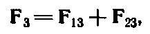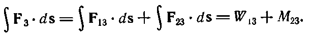 С другой стороны, в (13.16) ?пары означает, что каждая пара i и j встречается лишь однажды. Скажем, частицы 1 и 3 дают только один член в сумме. Чтобы отметить это, можно договориться, что i принимает значения 1, 2, 3, ..., а j для каждого i — только значения, большие чем i Если, скажем, i=3, то j равно 4, 5, 6, .... Но вспомним, что каждая пара i,j дает два слагаемых в сумме, одно с vi, а другое с vj, и что оба эти члена выглядят так же, как член в уравнении (13.14) [но только в последнем в сумму входят все значения i и j (кроме i=j)]. В уравнениях (13.16) и (13.15) член за членом совпадут по величине. Знаки их, однако, будут противоположны, так что производная по времени от суммы потенциальной и кинетической энергий действительно равна нулю. Итак, мы видим, что и в системе многих тел кинетическая энергия составляется из суммы энергий отдельных тел и что потенциальная энергия тоже состоит из взаимных потенциальных энергий пар частиц. Почему она складывается из энергий пар? Это можно уяснить себе следующим образом: положим, мы хотим найти всю работу, которую нужно совершить, чтобы развести тела на определенные расстояния друг от друга. Можно это сделать не за один раз, а постепенно, доставляя их одно за другим из бесконечности, где на них никакие силы не влияли. Сперва мы приведем тело 1, на что работы не потребуется, потому что, пока нет других тел, силы отсутствуют. Доставка тела 2 потребует работы W12=-Gm1m2/r12. И вот теперь самый существенный момент: мы доставляем тело 3 в точку 3. В любой момент сила, действующая на 3, слагается из двух частей: из силы, действующей со стороны 1, и силы со стороны 2. Значит, и вся произведенная работа равна сумме работ каждой из сил, потому что раз F3 разбивается на сумму сил