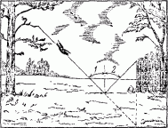 Рис. 101. Угол отражения 2 равен углу падения 1.