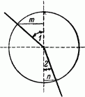Рис. 112. Что такое синус? Отношение m к радиусу есть синус угла 1, отношение n к радиусу — синус угла 2.