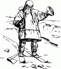 Доктор велел отрубить кусок льда, имеющий фут в диаметре и начал обравнивать его топором. Потом отделал его ножом, наконец постепенно отшлифовал рукою. Получилась прозрачная чечевица, словно из лучшего хрусталя. Солнце было довольно яркое. Доктор подставил чечевицу его лучам и сосредоточил их на труте. Через несколько секунд трут загорелся».