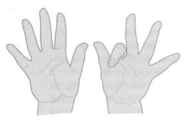 Если мы хотим умножить два числа больше 5, достаточно загнуть на каждой руке количество пальцев, соответствующее результату вычитания 5 из каждого множителя. Загнутые пальцы на обеих руках суммируются и умножаются на 10, и к этому прибавляется произведение числа поднятых пальцев на обеих руках. На рисунке 4 мы можем увидеть результат умножения 8 (8-5 = 3 загнутых пальца, в этом случае на правой руке) х9(9-5 = 4 загнутых пальца). Так как у нас загнуто 7 пальцев, а поднято 2 на одной руке и 1 на другой, то произведение 8x9 = 7x10 + 1x2 = 72.