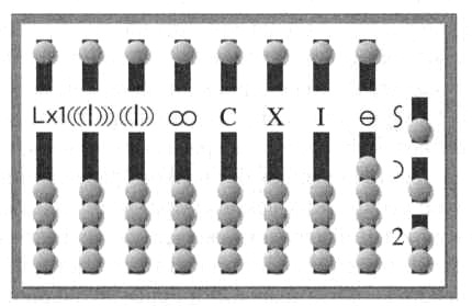 Изображение римских счетов. Их столбики представляют собой единицы, десятки, сотни, обозначенные римскими символами I, X и С, за которыми следуют единицы, десятки и сотни тысяч. Правая часть использовалась для представления дробей.