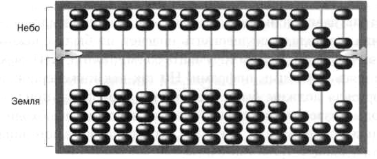 Китайские счеты. Читаются справа налево, следуя десятичному порядку: единицы, десятки и так далее. Считаются шарики у центральной поперечины.