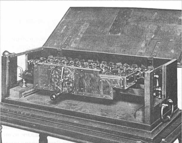 Механизмы арифметической машины Лейбница. Это была первая машина такого типа,которая позволяла осуществлять четыре базовые арифметические операции.