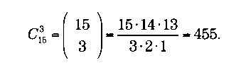 Итак, если бы мы хотели вычислить, сколько групп из 3 книг мы можем выбрать из возможных 15, нам пришлось бы вычислять число сочетаний 15 элементов взятых по 3, что дало бы: