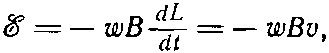 Нам следовало бы понимать этот результат и с другой точки зрения, отправляясь от магнитной силы v?B, действующей на заряды в движущейся перекладине. Эти заряды будут чувствовать силу, касательную к проволоке и равную vB для единичного заряда. Она постоянна вдоль длины w перемычки и равна нулю в остальных местах, поэтому интеграл равен