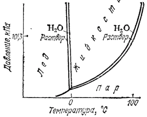 Рис. 78. Диаграмма состояния воды и водного раствора нелетучего вещества.