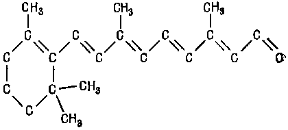 Те же самые слоистые структуры найдены и в других местах, где тоже важен свет, например в хлоропласте растений, где под действием света происходит фотосинтез. При большом увеличении мы обнаруживаем те же самые слои, но, конечно, вместо ретинена мы находим хлорофилл. Химическая форма ретинена показана на фиг. 36.6.
