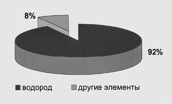 Огромные скопления водорода дают свет, например это звезды и наше Солнце. А в звездах, в свою очередь, производятся самые разнообразные элементы. Почти все атомы кислорода, которые мы вдыхаем, углерода в нашей коже и типографской краске на этой странице были произведены в звездах примерно пять миллиардов лет назад, когда начала формироваться Земля. Так что мы все являемся звездной пылью, или ядерными отходами, потому что звезды также можно назвать ядерными печами, в которых главным видом топлива является водород, звездный свет является производимой звездами энергией, а разнообразные элементы – это остающийся «пепел».