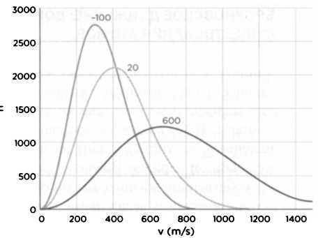 Распределение скоростей 104 частиц кислорода при разных температурах газа (-100?С, 20?С, 100?С).