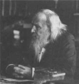 Менделеев учился в Санкт-Петербурге, где в возрасте 23 лет получил кафедру химии. Как и другие химики его эпохи, он присутствовал на Первом Международном химическом конгрессе в Карлсруэ, и работы Канниццаро об атомном весе элементов произвели на ученого сильное впечатление. В 1869 году он опубликовал "Основы химии", которые подводили итог знаменитой периодической таблице элементов. Позднее Менделеев побывал в США, где изучал способы добычи нефти. Со временем он получил признание в научном мире и стал почетным доктором университетов Оксфорда и Кембриджа. Этот химик был неутомимым путешественником. Кроме США, он нанес визит чете Кюри в Париже в 1902 году, хотя и не допускал существования радиоактивности. Для Менделеева речь шла всего лишь об энергии как свойстве некоторых атомов, которые остаются неделимыми.