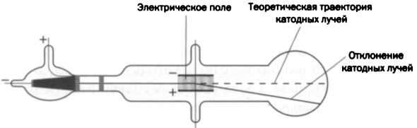 У этой тайны было два возможных объяснения. Первое заключалось в том, что это излучение было простым электромагнитным излучением, а второе, предложенное англичанином Уильямом Круксом (1832-1919), состояло в том, что излучение связано с потоком невидимых частиц. Крукс поднес к сосуду магнит, и... катодные лучи отклонились в сторону. Для окончательной разгадки тайны катодных лучей надо было дождаться 1897 года, когда уже упоминавшийся Джозеф Джон Томсон доказал, что лучи отклоняются не только в магнитном, но и в электрическом поле. В то время из заряженных частиц были известны только ионизированные газы Резерфорда. Но если катодные лучи были ионами, они должны были быть очень легкими, примерно в тысячу раз легче атома водорода, или должны были обладать значительным зарядом. Первое объяснение соответствовало другим опытам с электричеством: электрический ток — это движение крошечных частиц, электронов. Томсон показал также, что отрицательно заряженные частицы, испускаемые металлическими пластинами при высоком облучении (знаменитый фотоэлектрический эффект, который будет объяснен в знаменательном для Эйнштейна 1905 году), идентичны катодным лучам.
