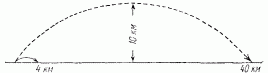 Способ этот был совершенно новый, никем еще не испытанный. Наткнулись на него немецкие артиллеристы случайно. При стрельбе из крупнокалиберной пушки под большим углом возвышения неожиданно обнаружилось, что вместо дальности в 20 км достигается дальность в 40 км. Оказалось, что снаряд, посланный круто вверх с большой начальной скоростью, достигает тех высоких разреженных слоев атмосферы, где сопротивление воздуха весьма незначительно; в такой слабо сопротивляющейся среде снаряд пролетает значительную часть своего пути и затем круто опускается на землю. Рис. 29 наглядно показывает, как велико различие в путях снарядов при изменении угла возвышения.