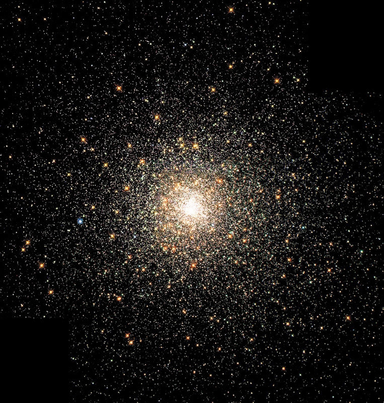 Этот звездный рой называется M80 (NGC 6093). Это одно из самых густонаселенных из 147 известных шаровых звездных скоплений в галактике Млечный Путь. Расположенное на расстоянии 28 тыс. световых лет от Земли, скопление M80 содержит сотни тысяч звезд, удерживаемых вместе взаимным тяготением. Шаровые скопления особенно полезны для изучения эволюции звезд, поскольку все звезды скопления — одного возраста (в данном случае около 15 млрд. лет), но имеют разные массы. Все звезды, которые можно увидеть на этом изображении, либо находятся на более позднем этапе своей эволюции, либо (в редких случаях) являются более массивными, чем наше Солнце. Особенно заметны яркие красные гиганты — звезды с массой, аналогичной массе Солнца, которые приближаются к концу своего существования.