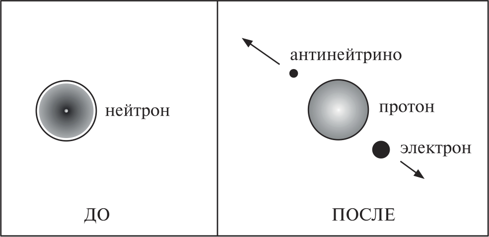 Итак, кроме трех фермионов (протона, нейтрона и электрона) у нас появились еще три (антипротон, антинейтрон, позитрон), то есть всего шесть частиц. Пока еще не густо. И остались загадки. Например, когда распадаются нейтроны, они превращаются в протоны и испускают электроны. Тщательное изучение процесса показало, что при таком распаде вроде бы нарушается закон сохранения энергии – полная энергия протона и электрона всегда оказывалась немного меньше, чем у их родителя нейтрона.