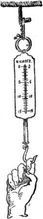 Слово «динамометр» составлено из двух греческих слов: «динамис» — сила и «метр» — мера. Значит, динамометр — это силомер. Динамометр устроен точно так же, как пружинные весы: с одной стороны кольцо, с другой — крючок, внутри — пружина, которая соединена со стрелкой или с указателем, ползающим по шкале.
