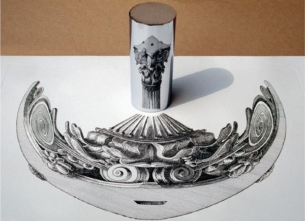 Илл. EE. В анаморфном искусстве отражаются не только изменения под действием перспективы, но и некоторые более общие виды трансформаций. Диапазон возможных изображений, которые могут представлять некоторую сцену, намного больше и включает некоторые очень искаженные варианты