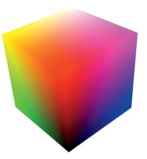 Илл. II и JJ. Цветной RGB-куб изображает имеющиеся возможности выбора окрашивания элемента изображения (пикселя) в каждой точке. Посредством цветового зрения мы получаем доступ к трем дополнительным измерениям
