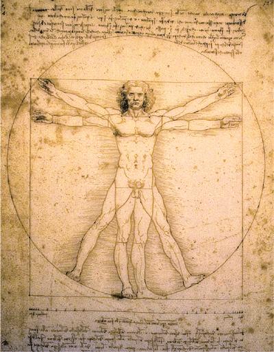Илл. ZZ. Классический рисунок человека по Витрувию, выполненный Леонардо да Винчи. Как и кеплеровскую модель Солнечной системы, его вдохновили прекрасные, но ошибочные идеи о глубокой реальности. (Но ошибочны ли они на самом деле?)