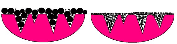 Рис. 48. Механизм образования защитного покрытия при использовании полиролей: обычной (слева) и нанополироли (справа)