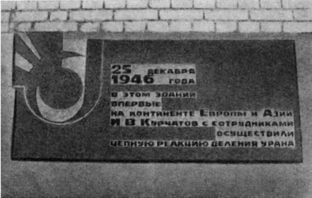 Мемориальная доска на здании первого в СССР и в Европе атомного реактора