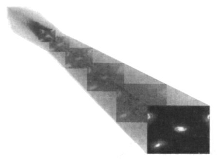 На рис. 8.8 вы можете видеть историю света, испущенного удалённой галактикой, возможно миллиард лет назад, путешествующего по направлению к нам в Млечный Путь. На начальном сечении в рис. 8.8а свет сначала испускается, и через последовательные сечения он оказывается всё ближе и ближе, в то время как Вселенная становится всё больше и больше, и наконец вы можете видеть, как он достигает нас на самом правом (на картинке) временном сечении. На рис. 8.8б, соединяя местоположения на каждом сечении, через которые проходит фронт света во время своего путешествия, мы показываем путь света через пространство-время. Поскольку мы получаем свет со многих направлений, на рис. 8.8в показаны примеры нескольких траекторий через пространство и время, которые выбирают различные лучи света, чтобы достичь нас в настоящем.